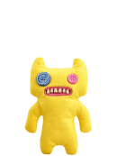Features: Human-like teeth, mismatched button eyes, yellow ears