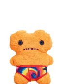 Features: Human-like teeth, wide dark eyes, tie-dye print underpants